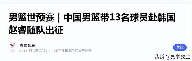 此次出征韓國,中國男籃共13位球員前往韓國,除了第一場比賽的12人名單之外,隊長趙睿也跟著一起去了韓國,但目前還不知道是否上場。