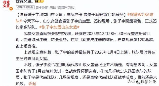 若是常規(guī)賽第12輪起具備上場資格為標(biāo)準(zhǔn),張子宇的首秀最快將于2026年1月4日上演,球隊屆時將在主場對陣河北女籃。