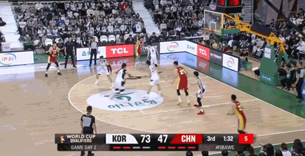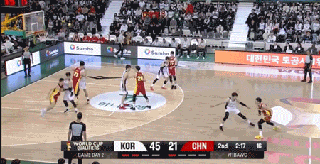 第二節中國男籃進攻依然沒有太大起色,本場比賽前11次三分出手全部偏出,直到第12次出手才投進。中國男籃上半場三分球12中1,韓國三分球10中7。上一場暴走的李賢重,今天上半場三分2中0,其余隊友加起來三分8中7!