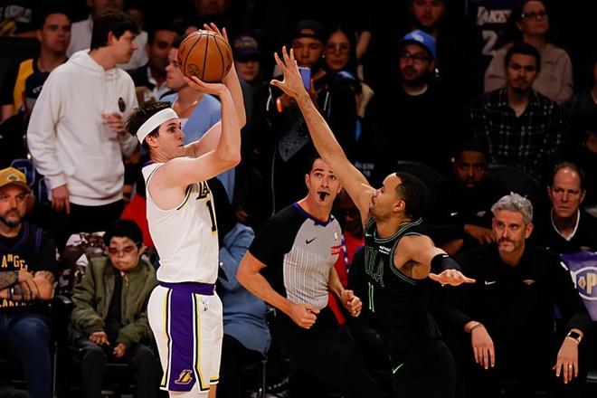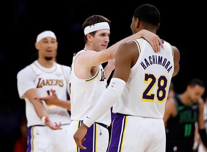 本場比賽中,湖人的先發后場大將奧斯汀-里夫斯(Austin Reaves)又一次打出了非常出色的表現。里夫斯全場出場39分38秒,投籃15中9,三分線外7中4,罰球12中11,拿下了33分5籃板8助攻1搶斷1蓋帽的全面數據,還有5次失誤和1次犯規,正負值為-2。里夫斯在本場比賽中依然是在進攻端大殺四方,他在得分方面的表現依然是非常出色的,他在外線投籃方面的手感也依然保持在一個超高的水平。里夫斯在傳球和組織方面也同樣起到了不錯的效果,他在防守端的表現其實也不算糟糕了??傮w來看,里夫斯在攻防兩端的表現都是相當突出的,他也是在場上將自己的才能完全發揮了出來并且為球隊的勝利做出了不小的貢獻。