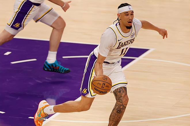 本場比賽中,湖人的替補中鋒賈克森-海斯(Jaxson Hayes)的表現還是值得肯定的。海斯全場出場21分01秒,投籃4中4,罰球1中0,得到了8分6籃板2助攻2蓋帽的數據,還有3次犯規,正負值為-2。海斯在進攻端也是展現出了不錯的籃下得分能力和終結能力,他也是又一次打出了運動戰100%的命中率,抓住了有限的機會得到了不少分數。不僅如此,海斯在防守端也能夠起到一定的作用,他也是將自己在護筐和內線防守方面的能力發揮了出來。海斯在本場比賽中的整體表現還是相當突出的,他在攻防兩端都起到了應該起到的作用,成功扮演了第二陣容內線支柱的角色,這樣的表現也是能夠讓大家感到滿意的。