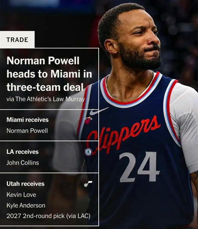 而兩隊幾乎互換命運般的表現都要從休賽期兩隊圍繞鮑威爾的交易說起,在7月份交易市場開啟一周后,熱火、快船與爵士迅速敲定一筆三方交易,具體內容如下: