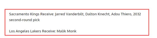 方案三,與國王交易,湖人送走范德比爾特,克內(nèi)希特,阿杜·蒂耶羅,2032年第二輪選秀權(quán),從國王得到蒙克!正處于動(dòng)蕩期、可能重組的國王是一個(gè)潛在的交易對象。對國王而言,范德比爾特的吸引力可能次要,但年輕鋒線蒂耶羅以及3分射手克內(nèi)克特,加上一個(gè)選秀權(quán),或許值得他們放棄蒙克。而對湖人來說,迎回舊將蒙克意義重大。他場均12.7分、三分命中率41.6%,是精英級的射手,能升級湖人的外線火力。