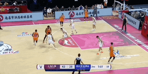 第二節后半段,四川隊在防守端有所加強,但仍然沒有能夠遏制住大鯊魚的進攻。隨著李弘權的一記壓哨三分球命中,上海男籃半場69-40四川男籃,領先對手29分。