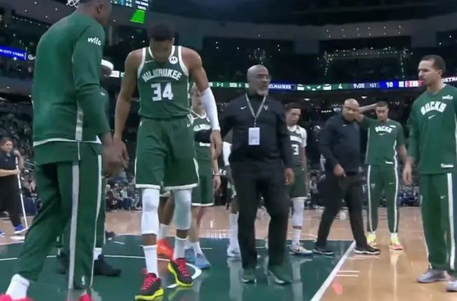 雄鹿隊本場比賽還有個壞消息,那就是“字母哥”揚尼斯-安特托昆博受傷了。在比賽首節只打了3分鐘,字母哥在一次回防的過程中突然無接觸受傷,直接倒地。這種情況很危險,可能是跟腱受傷,那就麻煩了。