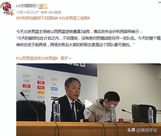 上賽季,北京男籃短時間內遭到山西雙殺,以及不敵廣東的新聞發布會,許利民的采訪提到三連敗仍在計劃內。