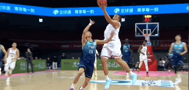 洛夫頓打手犯規,寧鴻宇三罰三中。隨后古德溫帶球,從左側弧頂處傳向正面弧頂時,被寧鴻宇搶斷,直接反擊暴扣,寧鴻宇連得5分,幫助寧波男籃將分差追到個位數,上海男籃叫停比賽。