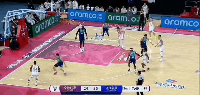 隨著古德溫背身強打,抹過辛普森,打板得分,上海隊10-4打停寧波隊。暫停回來,洛夫頓、古德溫同時登場。羅凱文三分球命中,李弘權轉頭就予以回擊。李添榮也不甘示弱,“李花”兄弟雙雙命中三分。