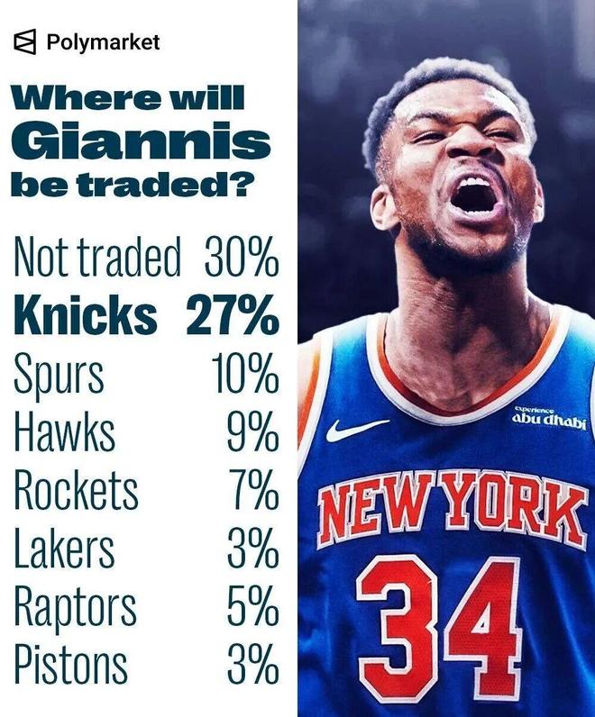 字母哥新下家賠率已經出爐,尼克斯、馬刺和老鷹分列前三,火箭第四,湖人第五,猛龍第六,活塞第七。