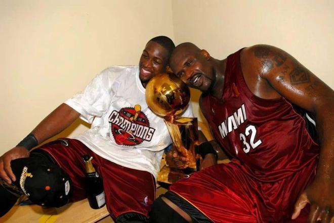 雖然這一年,由于韋德的意外受傷,使得他們止步東部決賽。但就在隔年,他們完成了神跡,一路闖進了總決賽的同時,也是成功在啊大比分0:2落后的情況下,逆轉擊敗了小牛隊,拿到了隊史的第一座總冠軍。雖然這一次,他未能拿到FMVP,但手拿第四枚總冠軍戒指,成功讓他成為了當時的NBA第一人。