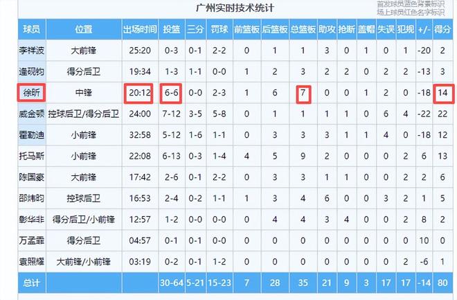 今天否定徐昕的人和杜鋒遭到了打臉,徐昕打了20分鐘,完全有體能支撐打20分鐘左右,而且數據也不俗,全場6投6中,砍14分7板。當廣東薩姆納替補上場后,頻頻沖擊籃框得分之時,教練讓他上去護框,結果真有效力限制了薩姆納。等到徐杰換下薩姆納后,才把徐昕換下來,但是后面徐昕也有上場機會。本場徐昕得分比前隊友王少杰和張昊的得分總和還多6分。
