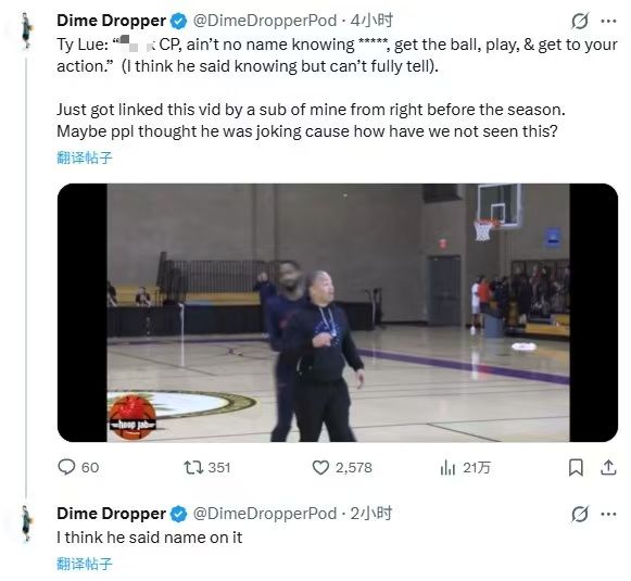 快船自媒體Dime Dropper發推稱:“泰倫盧曾在訓練場,隔空怒噴保羅拿球執行戰術。”