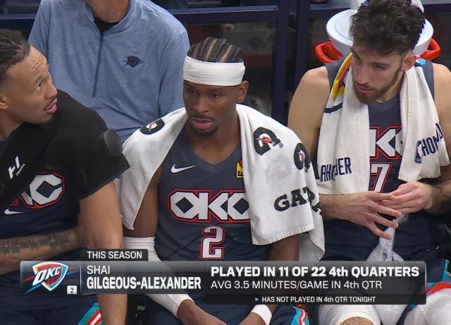 亞歷山大在上半場比賽中就已經砍下17分,幫助雷霆以63比48領先進入中場。第三節雷霆進一步接管比賽,單節贏了對手15分,徹底殺死比賽懸念,而亞歷山大單節獨得16分,6投5中,4罰全中。