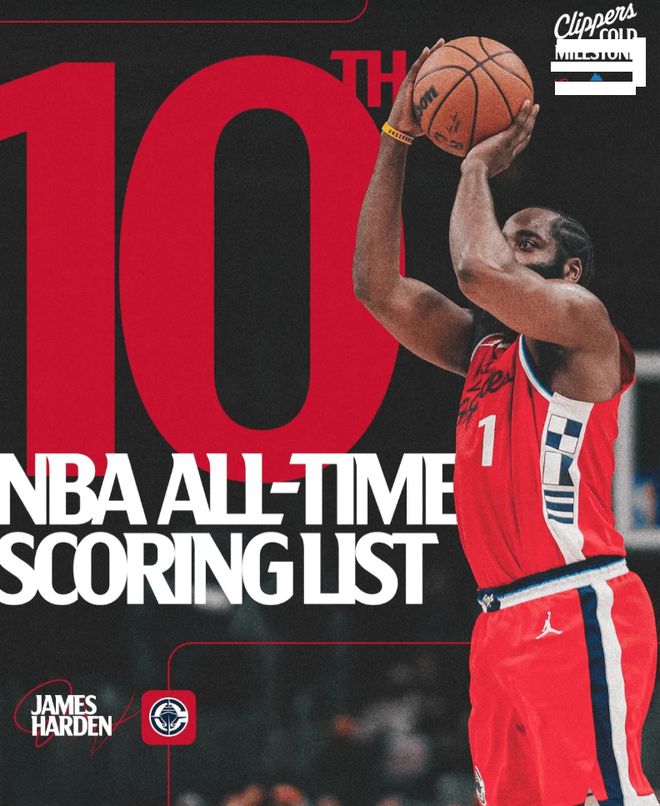 快船這邊,哈登8投6中,三分2中1、罰球8中6砍下19分3籃板2助攻4搶斷,常規賽總得分來到28288分,與安東尼并列歷史得分榜第十名;倫納德8投5中,三分2中2、罰球2中2得到14分2籃板2助攻;科林斯半場5投4中,三分2中2貢獻10分2籃板1搶斷。