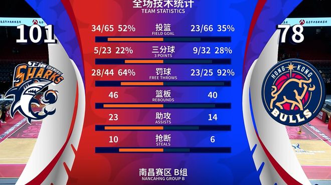 最終,上海男籃101-78戰勝香港金牛,收獲了俱樂部杯的三連勝,晉級八強,同時獲得了CBA俱樂部杯決賽圈的門票。在數據方面,上海男籃5人得分上雙,洛夫頓19分5板4助,弗格19分3板3助,王哲林18分7板1助,李弘權12分5板,古德溫10分6板6助,李添榮8分2板6助。值得注意的是,本場比賽上海男籃的罰球命中率并不高,44投28中,命中率僅有64%。