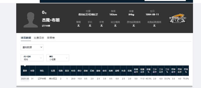 布朗是遼寧男籃本賽季新簽的小外援,身高1米83,司職后衛(wèi)。