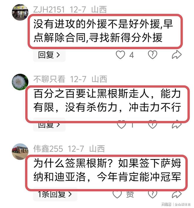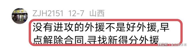 作為一名爭冠球隊,山西男籃本賽季找來黑根斯,還是讓許多人感到不惑。通過杯賽3場比賽,黑根斯“水貨外援”的本色也逐漸顯現,許多山西球迷也大失所望,紛紛表示“老黑的確不行!趕緊開了吧!”;“沒有進攻的外援不是好外援,早點解除合同,尋找新得分外援。”;“百分之百要讓黑根斯走人,能力有限,沒有殺傷力,沖擊力不行”;“為什么簽黑根斯?如果簽下薩姆納和迪亞洛,今年肯定能沖冠軍”……