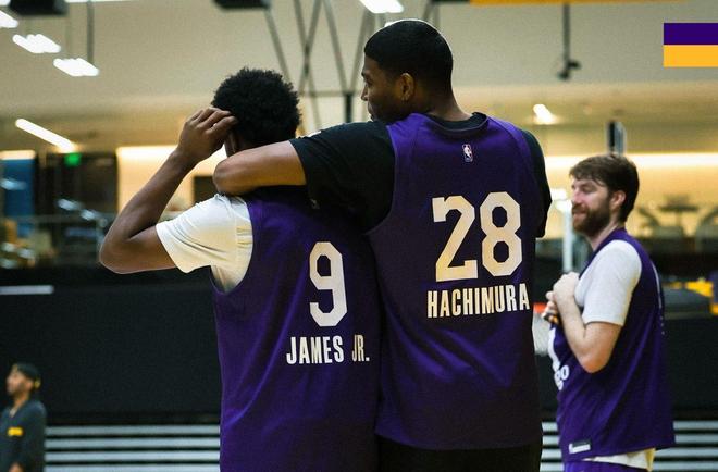 由于文班亞馬缺席比賽,艾頓將主要和科內特對位,他的壓力相對小一些,但是也不能掉以輕心??苾忍厥且晃环浅嵱玫乃{領中鋒。八村壘在場邊摟著布朗尼。八村壘是本賽季湖人最準的三分射手,在湖人的進攻體系中,他的作用非常重要。