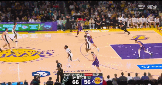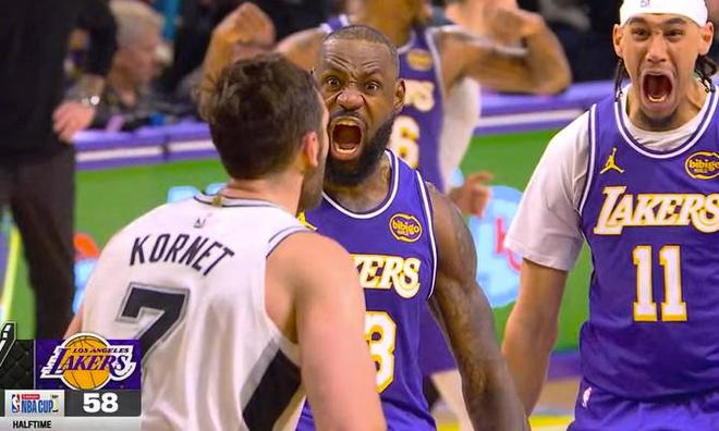 北京時間今日,在NBA杯1/4決賽中,洛杉磯湖人隊在主場119-132不敵圣安東尼奧馬刺隊,無緣杯賽四強。本場比賽,湖人隊球星勒布朗-詹姆斯出場36分26秒,14投7中得到了19分15籃板8助攻3蓋帽,三分球3投0中,罰球6中5,出現了3次失誤和2次犯規,正負值為-16。在第二節節末時段,詹姆斯曾完成了一次非常精彩的隔人暴扣,但最終沒能幫助球隊取得勝利。
