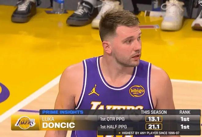 比賽開始后,近期狀態(tài)火熱的湖人立刻“對(duì)癥下藥”,由于“外星人”文班亞馬無(wú)法出戰(zhàn),馬刺只能遣上科內(nèi)特,這讓湖人內(nèi)線艾頓找到了自己的舒適區(qū),他在油漆區(qū)內(nèi)是予取予求,3中3連砍6分。隨后,本賽季聯(lián)盟最擅長(zhǎng)打第一節(jié)的東契奇接管比賽,外線連中兩記三分后拿到11分,帶隊(duì)打停馬刺!本賽季場(chǎng)均砍下35分的他已經(jīng)成為聯(lián)盟自96-97賽季以來(lái),首節(jié)(13.1分)和半場(chǎng)(21.1)得分最高的球員。