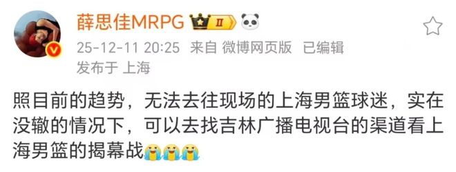 現(xiàn)在都2025年了,球迷居然還沒有網(wǎng)絡(luò)渠道觀看國內(nèi)最大的籃球賽事,這讓很多球迷直呼不可思議。特別是上海男籃的球迷,由于上海男籃是新賽季的爭冠熱門之一,球迷們希望能夠看到球員們每一場的表現(xiàn),但卻沒有網(wǎng)絡(luò)直播渠道。跟隊記者薛思佳已經(jīng)在社交媒體上呼吁上海球迷,去蹭其他球隊的直播觀看,就比如上海男籃首輪比賽的對手是吉林男籃,薛思佳就呼吁上海球迷可以通過吉林廣播電視臺觀看上海男籃的這場比賽。