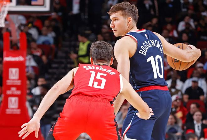 本場比賽中,快船的替補后場大將博格丹-博格達諾維奇(Bogdan Bogdanovic)的表現其實還算不錯。博格達諾維奇全場出場24分22秒,投籃4中2,三分線外3中2,罰球4中4,得到了10分5籃板2助攻1搶斷的數據,還有2次犯規,正負值為-2。博格達諾維奇沒有得到太多的出手機會,但是他還是展現出了自己的投射能力,他也是具備一定的持球進攻能力的,他也能夠完成一些支配球和分享球,他在進攻端的功能還是比較全面的。博格達諾維奇在防守端的貢獻度比較有限,他的個人防守能力也比較一般,但這一點也是大家都知道的事情。其實博格達諾維奇也算是快船陣容中為數不多的幾個具備不俗個人攻擊力的球員,也是火箭感到有些不太好防守的球員,可惜他的戰術地位還是低了一些,他也沒有辦法發揮出更大的作用。