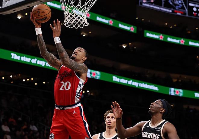 本場比賽中,快船的先發鋒線新援約翰-科林斯(John Collins)的表現依然是比較一般的。科林斯全場出場23分31秒,投籃7中3,三分線外3中0,罰球3中3,得到了9分2助攻2搶斷的數據,還有2次失誤和3次犯規,正負值為+4。科林斯在進攻端還是沒有找到自己的手感,他在外線投籃方面的表現也是非常糟糕的,完全沒有展現出自己的得分能力。不過另一方面,科林斯在進攻端也沒有得到更多的支持和幫助,他在這種情況下也確實是很難起到很好的效果。除此之外,科林斯在防守端也是打得有些吃力,也沒有辦法為球隊提供更多的幫助和支持。至少在本場比賽中,科林斯在攻防兩端都沒有發揮出自己的特點,顯得非常平庸。