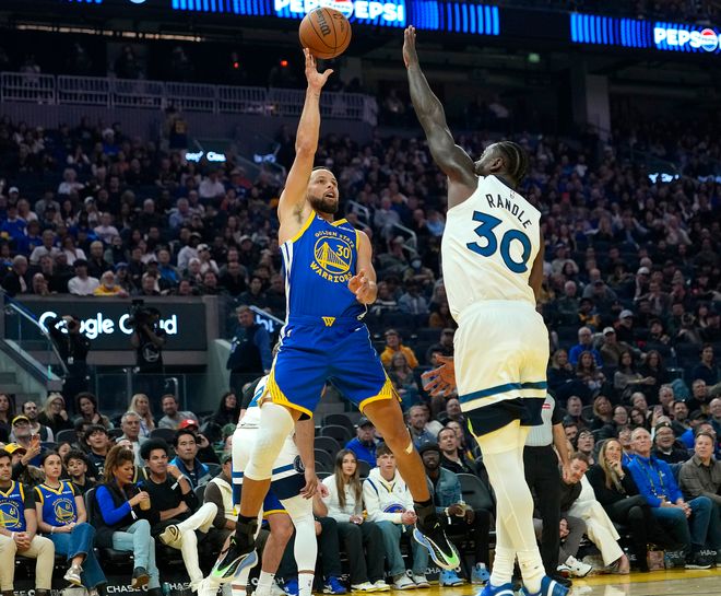 庫里傷停五場比賽后復出,11月27日-12月13日也就是整整16天,但斯蒂芬的三分手感依舊令人咋舌,賽前他命中一個貫穿全場的超遠三分球,這個球在天空中是一個弧線命中。