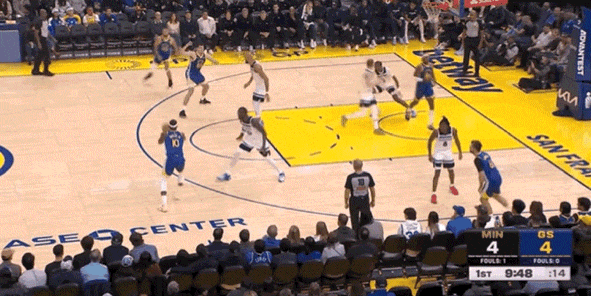 比賽一開場,庫里拋投命中幫助勇士搶占先機!不過森林狼迅速回應(yīng)。