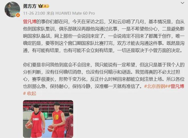 對了,北京隊存在較大的變數,因為他們的核心前鋒曾凡博尚未決定回歸新賽季的CBA,可能會前往海外聯賽效力,說是等到本期的世預賽打完之后才會有明確結果。