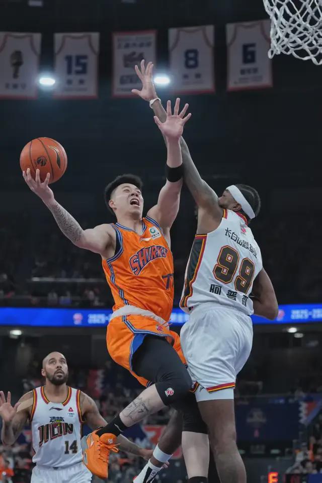 第二節(jié)吉林隊(duì)利用三分球打出11比4的攻擊波,不過(guò)大鯊魚(yú)外援古德溫連投帶傳迅速抹平分差,34比35。本節(jié)大鯊魚(yú)外線防守漏洞多,讓客隊(duì)打出了更流暢的團(tuán)隊(duì)進(jìn)攻,上半場(chǎng)以51比46反客為主。