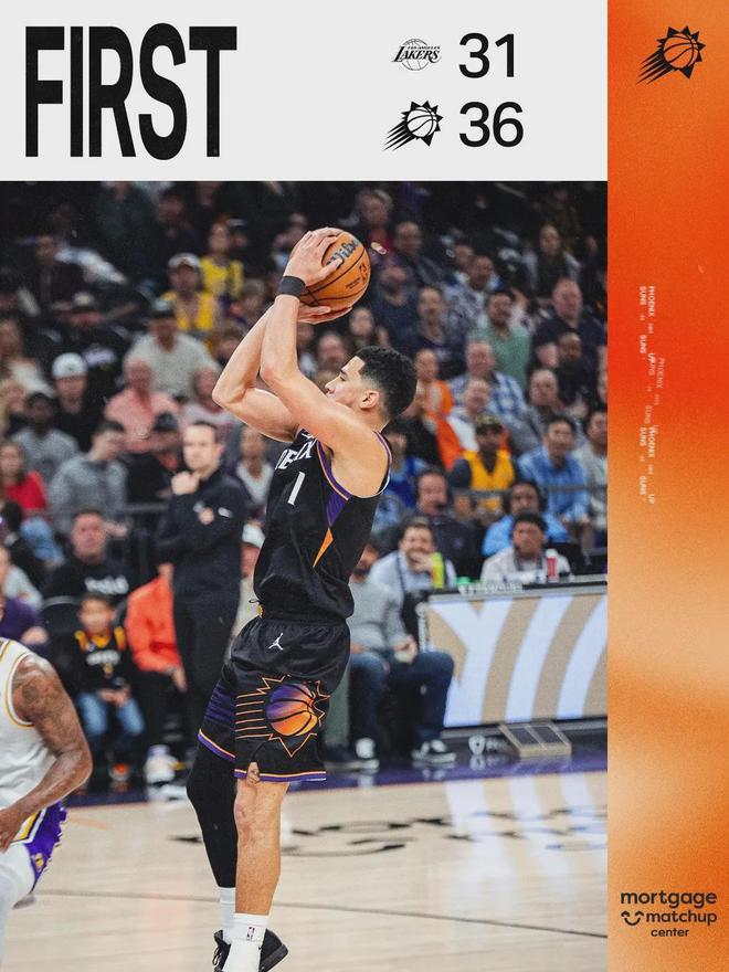 湖人全隊單節8次失誤,太陽完成5次搶斷。本賽季太陽場均10.8次搶斷,高居聯盟第一。首節戰罷,太陽36-31領先湖人。艾頓單節4中4拿到8分4籃板,但湖人外線只有8中2。第二節湖人依然沒解決失誤問題,東契奇單節出現4失誤。