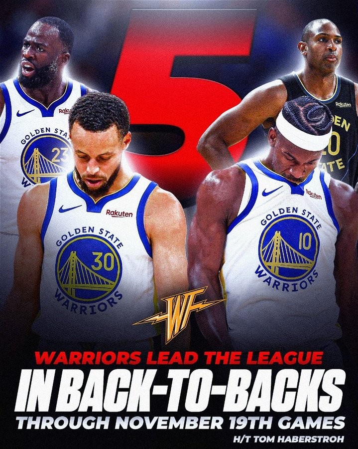 2025-11-20 08:15:50啥情況??!勇士開賽季17場已經(jīng)打了5個背靠背 其他隊最多3個!