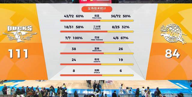 末節決戰,北京男籃上來轟出6-2,再次把分差拉大到了20+。新疆男籃徹底啞火了,在北京隊強大的火力攻擊下,劉煒的隊伍突然就不會打球了一樣,被北京男籃把領先拉開到了30+。最終,北京男籃以111-84大勝新疆男籃,斬獲2連勝。