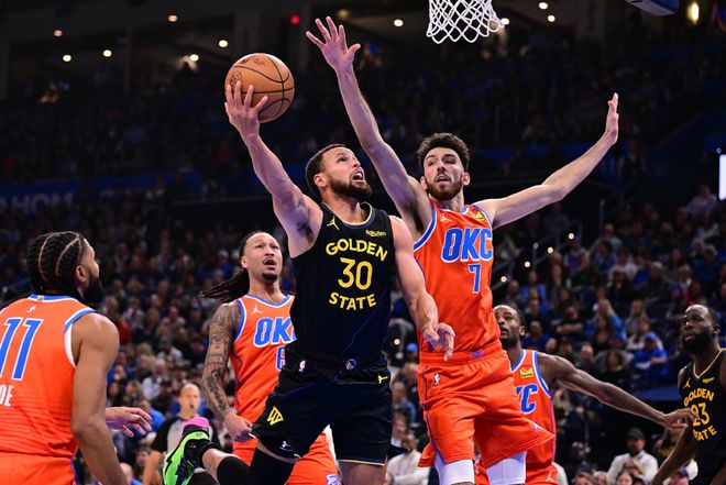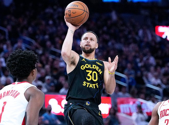 但問題哪有那么簡單!以庫里最近6場出戰的比賽為例,勇士1勝5負,輸魔術,庫里空砍34分;4分惜敗開拓者一戰,庫里空砍38分;打爵士庫里拿到31分球隊贏球;打火箭庫里只拿到14分,包括最近兩場空砍,庫里場均34分的輸出,這已經是聯盟最強一檔,為什么勇士很難贏球?先看三組數據,第一,庫里本賽季在場時,球隊進攻效率119.9,防守效率119.0,百回合凈效率值+0.8;他不在場時,球隊進攻效率109.7,防守效率108.4,凈效率值+1.3,于是庫里的On-Off值是-0.5,原因很簡單,庫里在場,球隊防守實在拉胯。