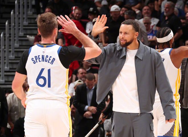 NBA常規賽賽程進行完三分之一,勇士戰績13勝14負,排名西部第八,很穩。之所以用很穩來形容,是因為后面的灰熊、獨行俠、開拓者、爵士等,家家有本爛賬,短時間很難追上勇士;但勇士想去接近前面的太陽和森林狼也很難,如果給勇士一個定位的話,就是西部三檔球隊,季后賽邊緣球隊,哪怕拿到季后賽門票,到了季后賽也是首輪送分童子。庫里最近兩場比賽復出后,對陣森林狼,砍下39分,結果讓森林狼拿到127分;對陣開拓者空砍49分,結果讓開拓者拿到136分。從表面來看,是隊友辜負庫里的努力。