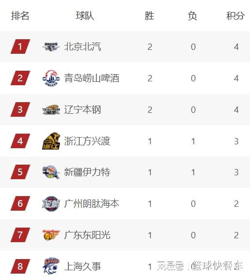 上一輪比賽,北京隊排在積分榜第2名的位置,這一場比賽,面對同樣是傳統強隊新疆隊,主場作戰的北京隊并沒有手軟,他們在攻防兩端全方位壓制住對手,最終以27分的優勢擊敗對手,成功拿到兩連勝。這一場比賽過后,北京隊以2勝0負的戰績,坐上了積分榜第一的位置。而青島隊則在大比分擊敗四川隊以后,同樣拿到了兩連勝,以2勝0負,緊隨其后,排在積分榜第2名。