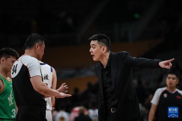 12月15日,遼寧本鋼隊主教練楊鳴(右)在比賽中對判罰提出質疑。新華社記者 潘昱龍 攝