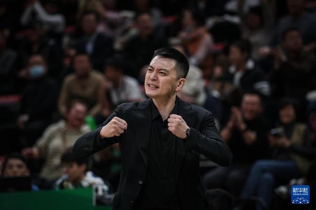 12月15日,遼寧本鋼隊主教練楊鳴在比賽中慶祝。新華社記者 潘昱龍 攝