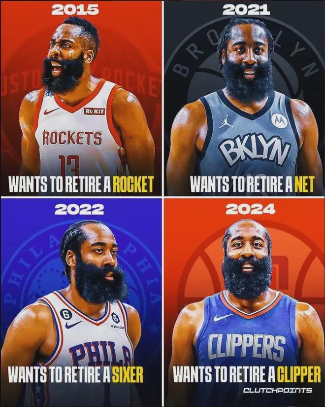 況且哈登迄今為止的NBA生涯,分別效力過雷霆、火箭、籃網、費城和快船,除了12年那次轉會并非自己意愿,其余全部是自己的選擇,那多做一次選擇又何妨呢?