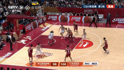 憑借李悅州、張洪碩連中2記三分以及吳前的搶斷反擊,比賽最后2分鐘浙江再度扳平比分93-93,杜鋒這次沒有換上薩姆納,選擇繼續相信薩林杰,薩林杰不負眾望送出助攻,徐杰投進關鍵三分,隨后1分25秒,薩林杰接胡明軒助攻下順再進2+1,廣東2次進攻回合拿下6分,領先來到99-95,壓力重新給到丁偉。