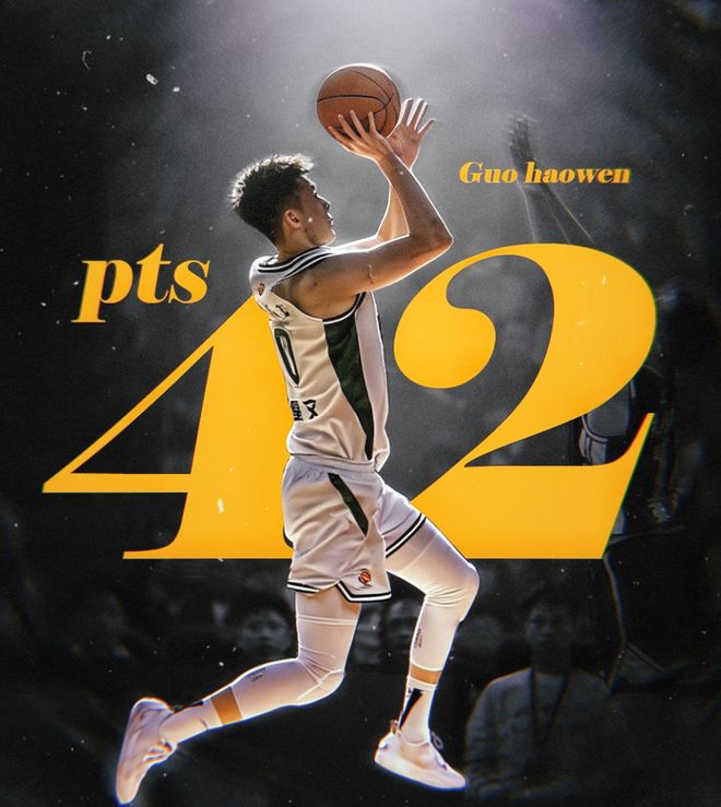 首發出戰37分鐘,郭昊文27投14中爆砍42分6籃板8助攻,在 三分線外12投6中,罰球線上12罰8中,破壞力極強。