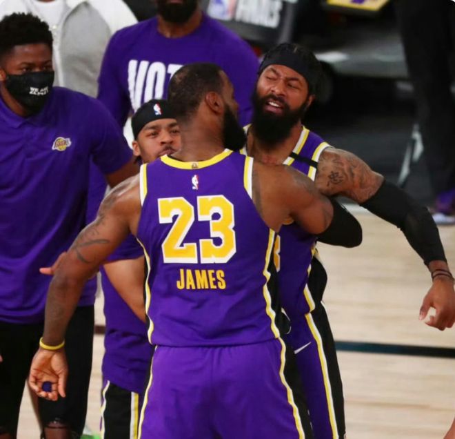 詹姆斯和大莫里斯都是湖人2019-20奪冠賽季的冠軍成員,當(dāng)時在封閉園區(qū)內(nèi)比賽,湖人奪得了園區(qū)總冠軍。
