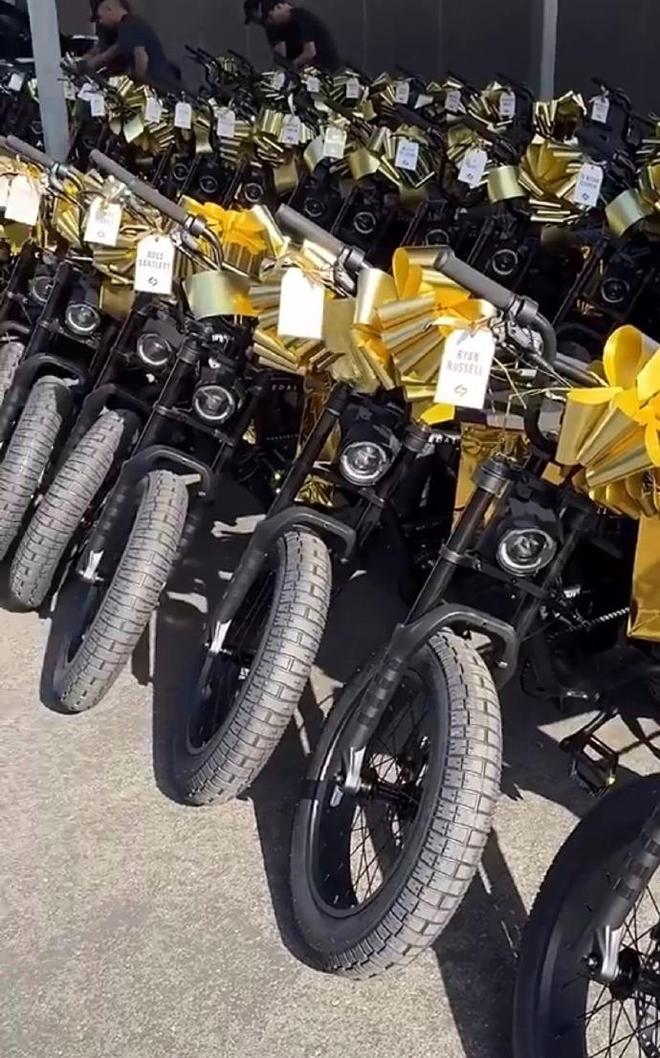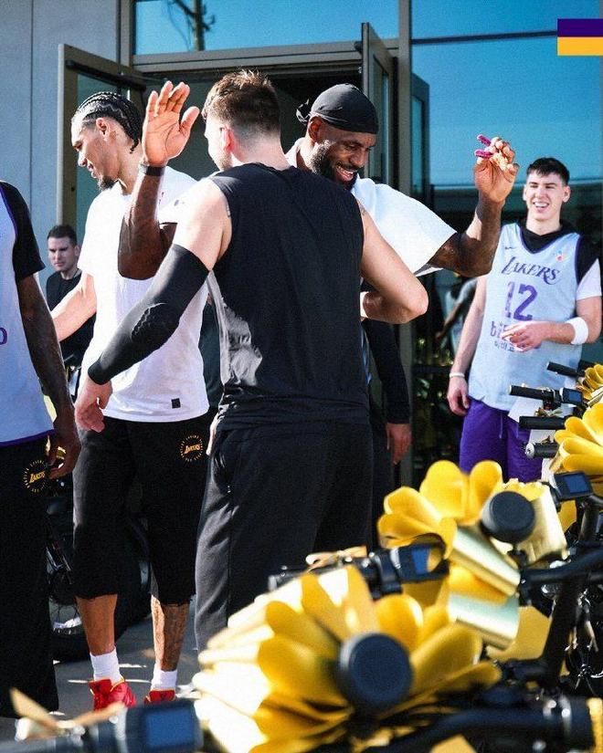 東契奇為湖人全體隊員、教練組成員及籃球運營部門工作人員,每人贈送了一輛全新的電動助力自行車,合計送了100多輛。