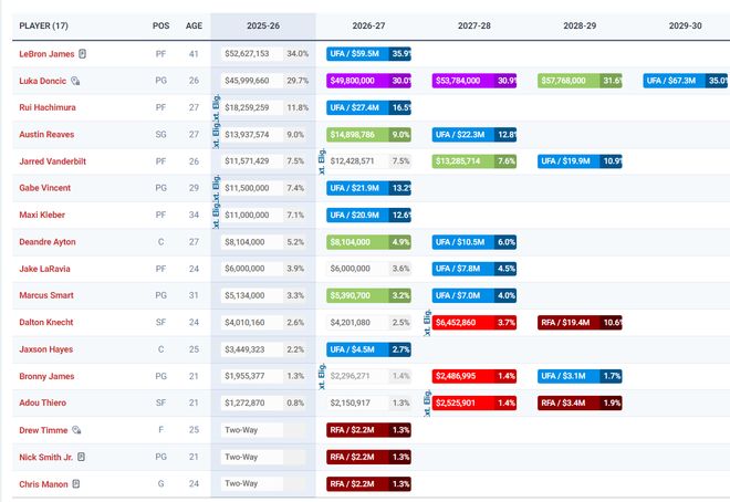 2026年夏詹姆斯5262萬的合同到期,里夫斯將跳出他1439萬的球員選項,這里湖人等于就清理了6700萬左右的薪金空間,湖人也可以跟里夫斯達成五年2.87億的超級頂薪,那么里夫斯就會成為揚尼斯最好的交易籌碼。
