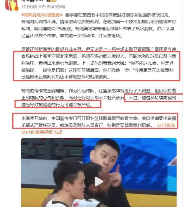 雙T驅(qū)逐,楊鳴被強(qiáng)制離場(chǎng),遼寧隊(duì)就此失去指揮核心。