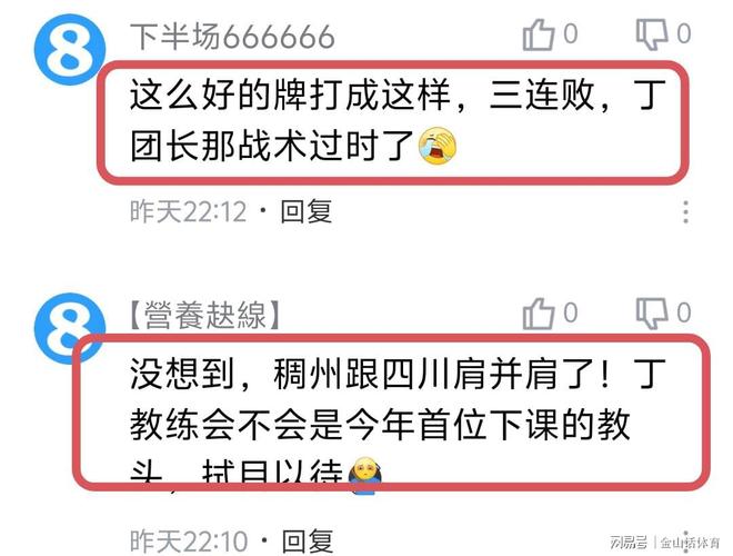 球隊陷入得分荒,不上得分能力最強的小外援,卻讓一個藍領大外援上場,“丁團長”的昏招也遭到網友吐槽“丁偉已經被事實反復證明就不適合做教練,偏偏就有犟種不信邪!上帝要毀滅一支球隊就會給一個丁偉。”;“留給丁團長的時間不多了”;“沒想到,稠州跟四川肩并肩了!丁教練會不會是今年首位下課的教頭,拭目以待!”;“這么好的牌打成這樣,三連敗,丁團長那戰術過時了”;“開局3連敗,丁團長該走人了”……
