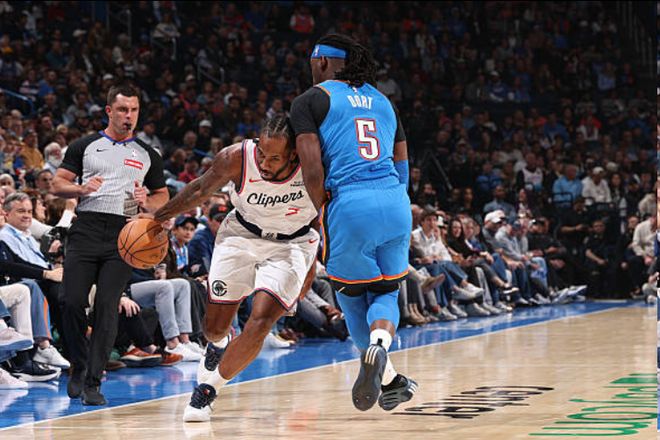 在首節(jié)比賽中,快船以33-27領先雷霆,但是到了第二節(jié),快船的進攻效率開始下降,球隊只得到22分,但是雷霆卻轟下37分。上半場比賽中,快船內線得分為18分,而雷霆高達38分,雙方差20分,快船上半場以55-64落后于雷霆。