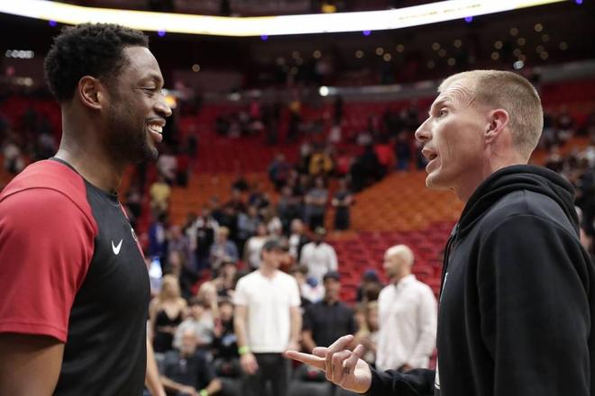 首先,就是那一年已經(jīng)34歲的奧尼爾了,盡管在加盟熱火隊(duì)的前2個(gè)賽季,他都入選了最佳第一陣容,甚至一度差點(diǎn)就拿到了生涯的第二座常規(guī)賽MVP,但不得不承認(rèn),奧尼爾確實(shí)也老了。這一年,他雖然還可以輸出20分、9.2個(gè)籃板、1.9次助攻和1.8次蓋帽,但統(tǒng)治力已經(jīng)明顯不足,而且他還因?yàn)閭∪毕?3場(chǎng)比賽。但奧尼爾畢竟當(dāng)時(shí)已經(jīng)三冠在手,豐富的經(jīng)驗(yàn)和細(xì)膩的技術(shù),成功幫助他完成了轉(zhuǎn)型。