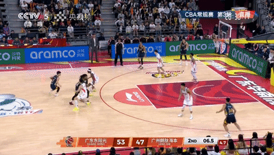 次節最后5分鐘,米歇爾換回郭艾倫霍勒迪,徐杰薩林杰也終于回到場上,接下來,廣東隊通過持續包夾郭艾倫+沖擊沒有徐昕護框的廣州隊籃下,廣東再造多次反擊+罰球,5分鐘打出20-9(薩林杰徐杰合砍10分),半場結束55-47領先廣州。